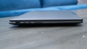 Lenovo doesn’t skimp on the ports, which are more plentiful than you typically see on a laptop this size. If you’re picky about which side the charger connects on, righties are out of luck; both of the USB-C/Thunderbolt ports are on the left. But the two USB-A ports are on the right if you need to connect older keyboards or mice. Plus, it has an SD card slot, which is convenient, and an HDMI connector for monitors that don’t have USB-C or when you don’t have your USB-C-to-HDMI adapter.